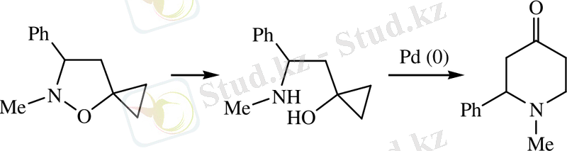 Авторлар [3] 1-метил-2-фенилпиперидин-4-онды екі сатыда изоксазолидин-5-спироциклопропан негізінде циклдің ұлғаюы әдісімен синтездеудің таптырмас жолын ұсынды. Бірінші сатыда изоксолидиндегі N-O байланысының хемиселективті каталитикалық тотықсыздануынан тұрады, ал екінші сатыда β-аминоциклопропанол Pd(0) қатысында пиперидин-4-онға айналуы жүреді: