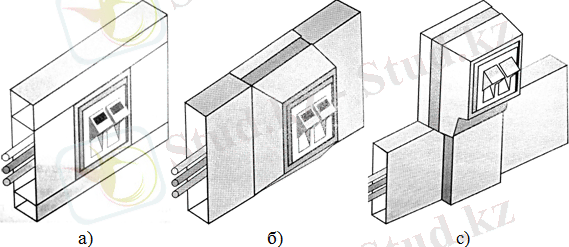 1-сурет. а) қораптың ішіне, б) қораптың үстіне, с) қораптың жанына орналастыру