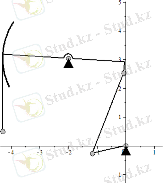 Сурет 5. ПШН-8-3-5500 тербелмелі станоктың рычагты механизмінің Maple 16 жүйесінде алынған қарапайым кинематикалық схемасы.