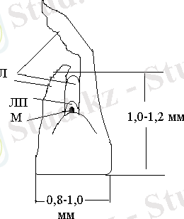 Сурет 4. Алманың төбе бүршігінің көлденең кесіндісі. Белгілеу: M - апикальды меристема; Л - жапырақ.