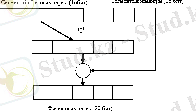 базалық адресінің мәні 16-ға көбейтіледі (4 разрядқа оңға қарай жылжу) де сегменттің жылжу мәнімен қосылады. Нәтижесінде