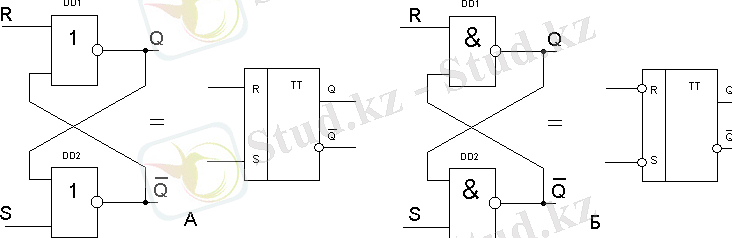 78. Триггер- екілік кодтың бір зарядын сақтайтын, компьютер регистрында кең қолданылатын электрондық схема. Триггер екілік санау жүйесіндегі 1 жəне 0 болатын, екі тұрақты күйі бар. Триггер темині trigger - ілмек -деген ағылшын сөзінен шықан. Триггердің ең кең тараған түрінің бірі RS-триггері (R жəне S, сəйкесінше set -орнату жəне reset - қайта жүктеу) . Белгіленуі 3- суретте келтірілген.