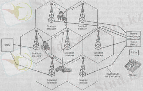 Барлық базалық станциялар бөлінген сымдық және радиорелейлі байланыс арнасы арқылы қозғалмалы коммутация байланыс орталығын байланыстырады. MSC коммутациялық орталығы желіні басқарудың барлық функцияларын қамтамасыз ететін, ұялы байланыс жүйесінің автоматты телефонды станциясы. Ол қозғалмалы станцияларға тұрақты бақылауды ұйымдастырады, олардың эстафетті таралуын құрады. Ұялы байланыс стандарттарының әртүрлілігіне қарамастан, олардың функциялану сұлбалары, өзінің ерекшеліктеріне қарамастан ұқсас. Абонент үшін байланыс қай стандартта орындалуының ешқандай айырмашылығы жоқ. Егер оған байланысу керек болса, ол өзінің радиотелефонындағы пернені басады, ол қарапайым трубканы алғанға сәйкес. Керек абонентті шақыру үшін барлық ұялы байланыс жүйесінің базалық станцияларның басқару арнасы арқылы шақыру сигналы жеткізіледі. Абонентпен шақырылатын ұялы телефон бұл сигналды алғанда, бір бос басқару арнасы арқылы шақыруға жауап береді. Жауап сигналды қабылдаған базалық станция өз кезегінде шақырылатын абоненттің ұялы радиотелефон сигналының максималды деңгейі тіркелген базалық станция, сөйлесуді ауыстыратын коммутация орталығына оның параметрлері жайлы ақрпарат береді.