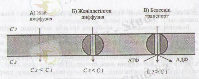 Ұсақ молекулалы заттардың биомембрана арқылы өткізілуінің 3 жолы белгілі:
