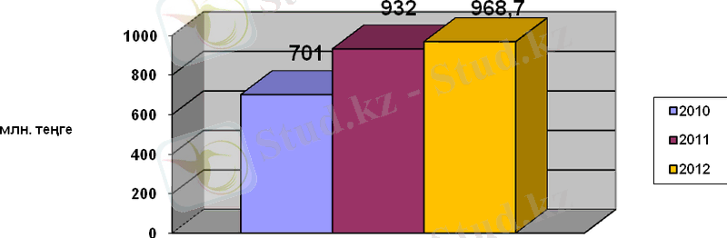 2012 жылы тауар өнімі 968, 7 млн. теңге сомасына өндірілді, бұл 2010 жылға қарағанда 1, 3 есе артық (1-диаграмма)