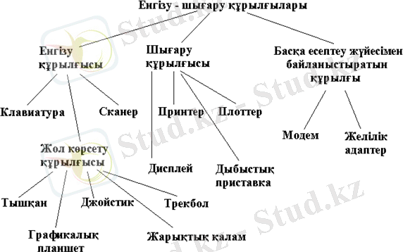 Мына суретте ДК сыртқы құрылғыларының классификациясы келтірілген.