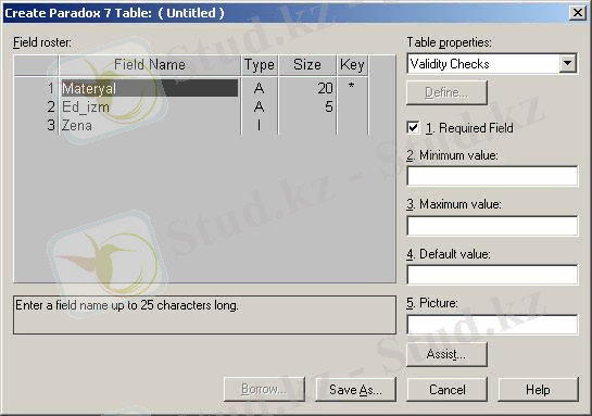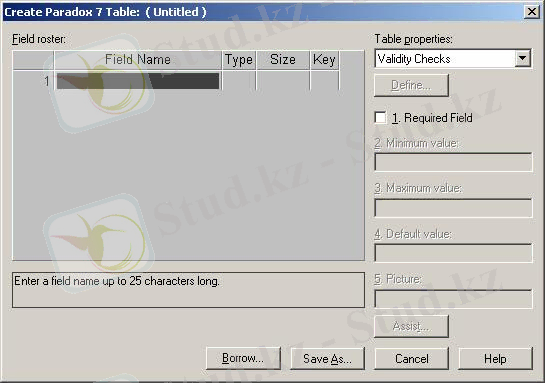 Сурет 1. 1. Database Desktop утилиті: ДҚ кестесінің құрылымын анықтау терезесі
