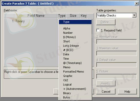 СУБД Paradox мүмкін барлық типі 8-суретінде келтірілген.