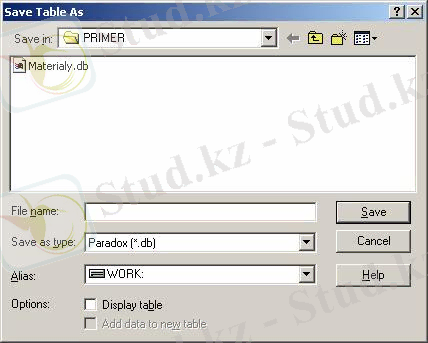 Содан соң С:\PRIMER каталогында құрылған кесте ( Materialу ) аты анықтағаннан кейін Materialу файлы құрылады.