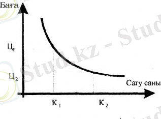 Бұл қисық баға мен сатылатын өнім көлемі арасындағы кері байланысты көрсетеді, яғни, басқадай өзгерістер болмаған жағдайда тауар бағасы өссе, онда осы тауарға деген сұраныс төмендейді. Бұл құбылыс - сұраныс заңы деп аталады.