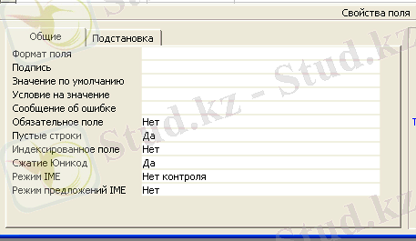 2. 3 Мәліметтер базасы өрістерінің қасиеттері