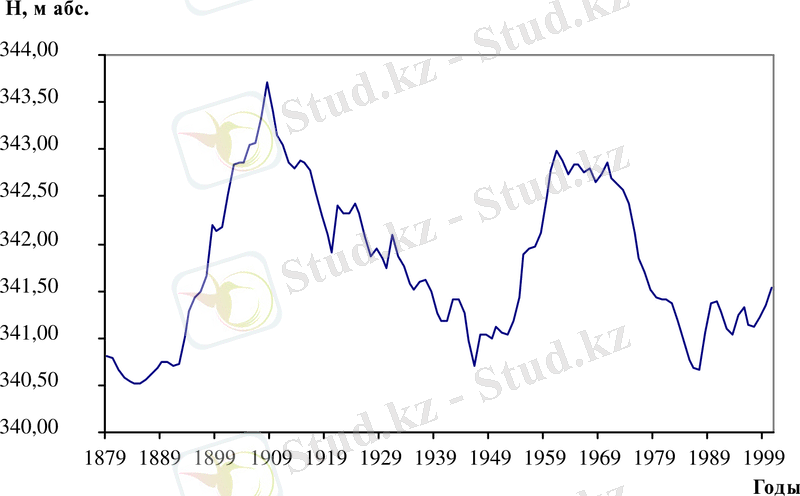 1886-1910 жж. - максимумы 1908-1910 жылдары байқалған су деңгейінің көтерілуі;