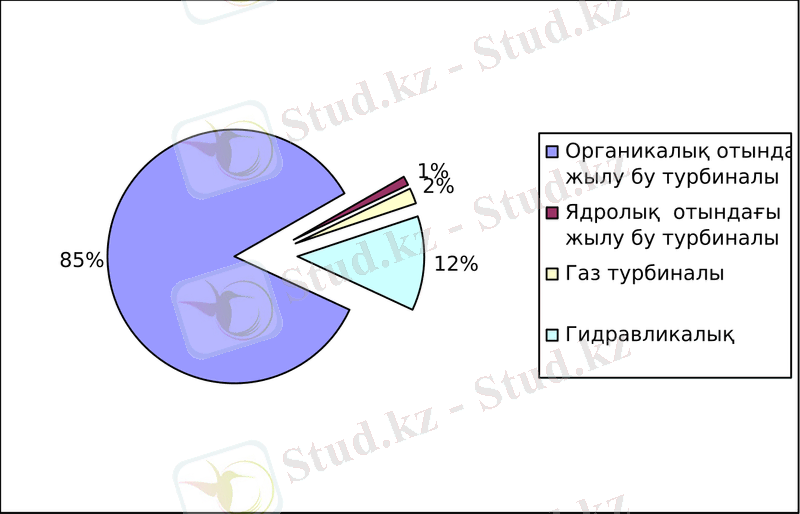 Электр энергиясының көп бөлігін (85 пайыздан аса) Қазақстанда салыстырмалы түрде арзан жергілікті көмірді жағу арқылы алады, ал 15%-ға жуығын гидроэлектр станциялары береді (1 сурет) .