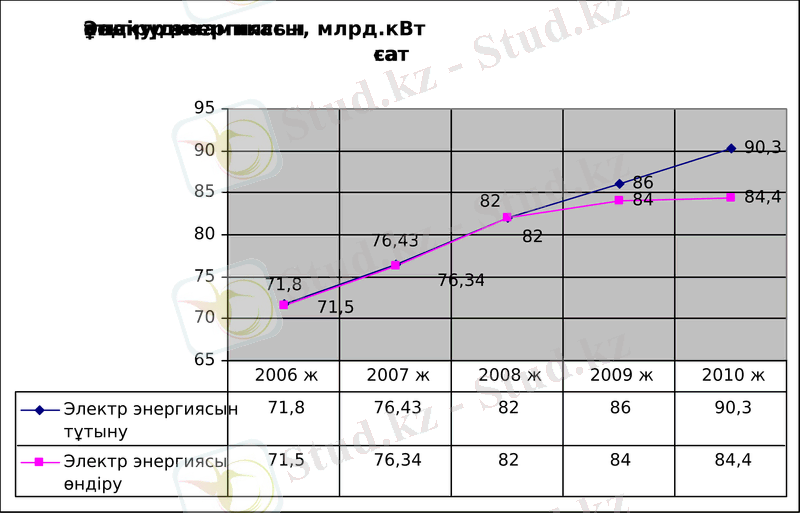 Электр энергиясын өндіру және тұтыну динамикасы көрсеткендей 2000 жылдан 2007 жылға дейін электр энергиясын өндіру 148, 4 %-ға өскен, бұл электр энергиясын тұтынудың жыл сайынғы өсімі 6-8 % екенін білдіреді. Мұндай беталыс 2008 жылдың 1 тоқсанында да сақталған. Мұнда өндірістің өсуінің тек 9, 5 %-ы ғана жаңа қуаттылықтар енгізу арқылы қамтамасыз етілген. Негізгі өсім жұмыс істеп тұрған қуаттылықтардың резервтерін іске қосу есебінен жүзеге асқан (2-сурет) .