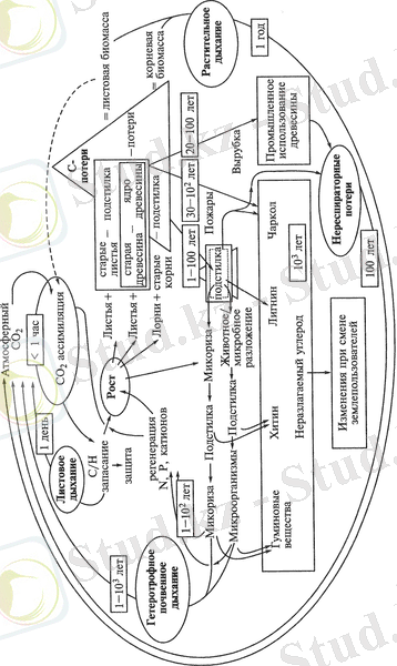 Орман экожүйелеріндегі көміртек циклы (Schulze бойынша, 2000)