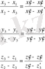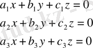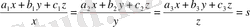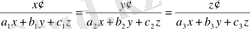 Үш түзудің теңдеулерін біртектес координаталар арқылы алайық: