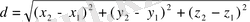 Кеңістіктегі тік Декарттық координаталар үшін М 1 (х 1 , y 1 , z 1 ) және М 2 (х 2 , y 2 , z 2 ) нүктелерінің арақашықтығы