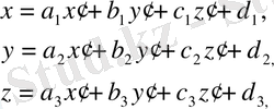 Формулаларды конгруэнттік түрлендіруді сипаттайды. Осы сияқты кеңістіктегі аффиндік түрлендіру мынадай формулалармен сипатталады: