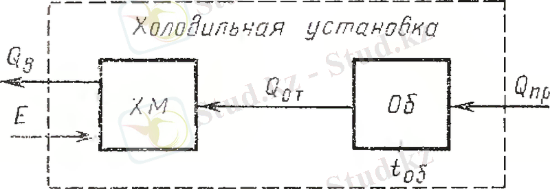ХМ тоңазытқыш қондырғысы сыртқы көздерден Е энергияны қолдану арқылы салқындатылған ортаға ( ауаға немесе суға ) Q в жылуын бөліп шығаруды қамтамасыз етеді.