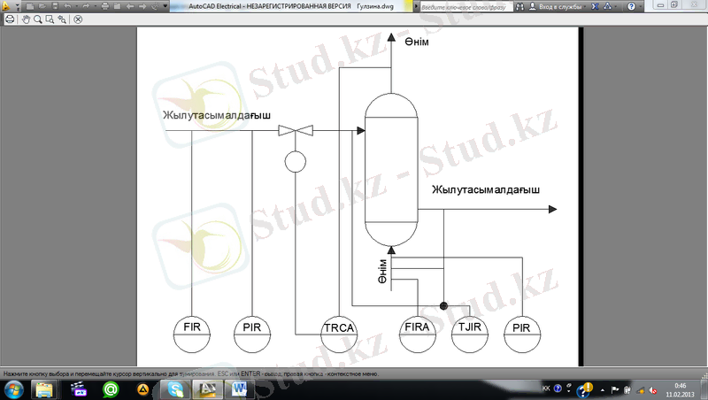 Курстық жоба мақсаты: кәсіпорындағы сұйықты қыздыру процесін автоматтандыру, бақыланатын сигналданатын параметрлерді таңдау, автоматтандыру құралдарына спецификация құру, тарылту құрылғысының көмегімен су шығынын есептеу.