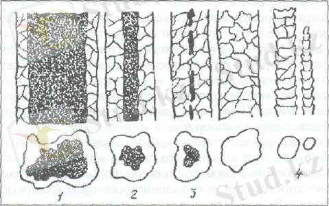 өлі талшық, 2-қылшық, 3- аралық талшық, 4- түбіт.