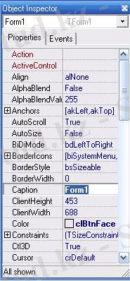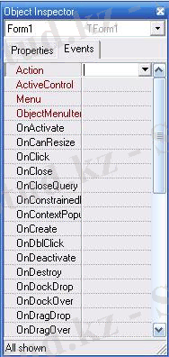 2. Object Inspector - Delphi-мен жұмыс істеу үшін қажет. Ол әдіс парағы (страница свойств, Properties) және оқиға парағынан (страница событий Events) тұрады.