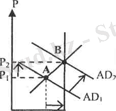 1(а) -суретте ақша ұсынысының өсуі жиынтық сұраныс қисығын АD 1 қисығын АD 2 -ге жылжытады, яғни жиынтық сұраныс өсті. Ү 1 өнім көлемі Ү* әлеуетті өнім көлемі деңгейіне өсті. Демек, рецессияны жойып, ресурстарды толық жұмысбастылық деңгейінде пайдалануға мүмкіндік берілді.