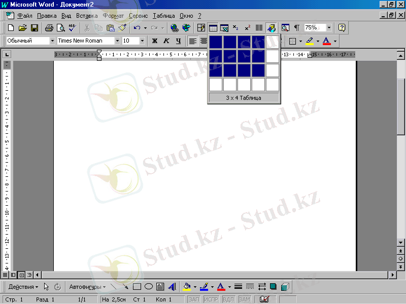 1. 16- сурет. Кестені енгізу батырмасы кесте өлшемдерін қарапайым түрде белгілеп көрсетуге мүмкіндік берді.