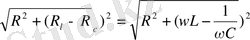 Тізбектей қосылған реостат, конденсатор мен катушканың толық кедергісі: