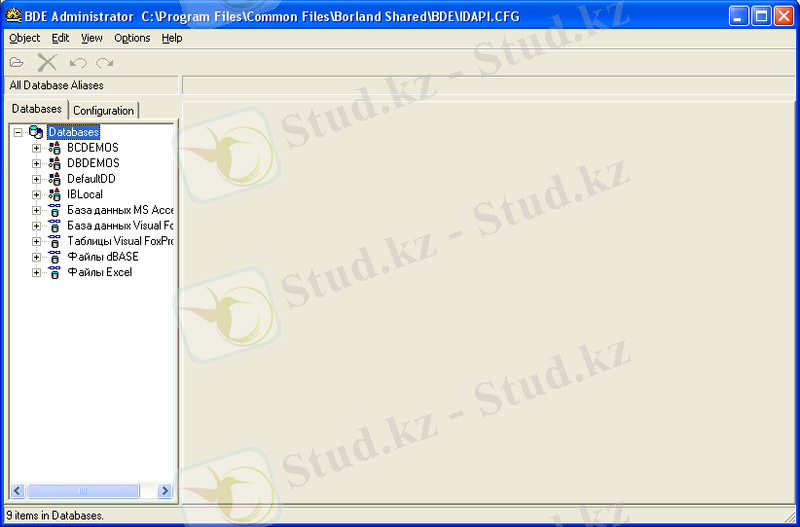 1 - сурет. BDE утилитасы конфигурациясының басты терезесі.