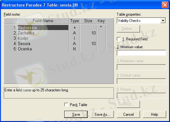 5 - сурет. sessia. db кестесін құрастыру терезесі.