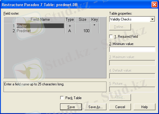 6 - сурет predmet. db кестесін құрастыру терезесі.