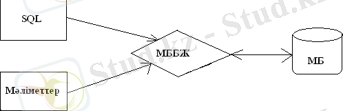 Осы схемаға сәйкес SQL жүйесінде маңызды ақпараттарды сақтайтын мәліметтер базасынан мәліметтерді оқығысы келсе, онда ол SQL көмегімен МББЖ-не өтініш жібереді. Мәліметтерге өтініш жіберу және нәтиже алу процестері мәліметтер базасына өтініш беру деп аталады. Сондықтан SQL құрылымдық өтініш тілі деген атқа ие болған.