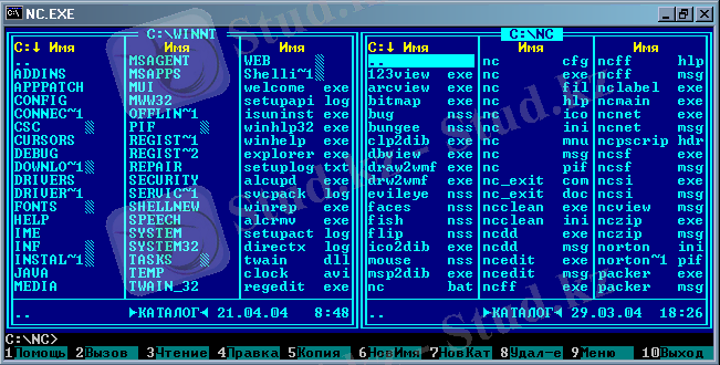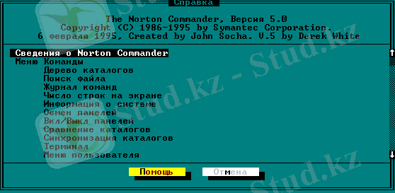 Norton Commander (NC) бағдарламасының төменгi менюi.