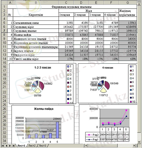 - “Жалпы пайда” мен “Барлық шығын” мәндерінен график тұрғыз.