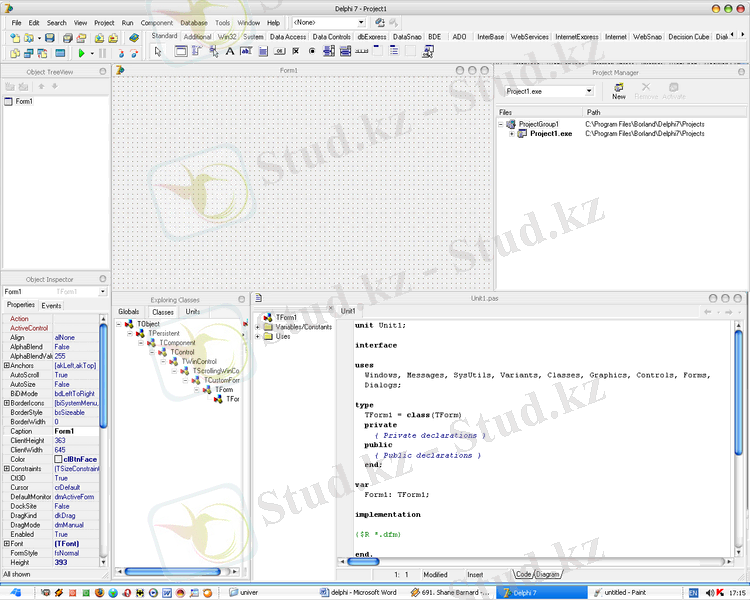 Delphi 7 версиялы программаның басты терезесі