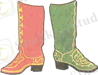 Оның өкшесі аласа, қонышы тізені жауып тұрарлықтай ұзын болады. Ал басының ойындысын қонышының ойындысына дәл келтіріп, тігісін ішіне қаратып қос тарамыспен тігеді. Басын кондырған соң оның қонышын қусырады. Етіктің қонышын қусырғанда етік жылы әрі берік болу үшiн тігістің арасына жіңішке былғары таспадан сыздық салып, қос тарамыспен жиі етіп тігеді.
