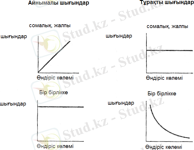 Шығындар беталысы: тұрақты, шартты - тұрақты, айнымалы, шартты - айнымалы.