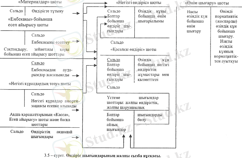 Бухгалтерлік есеп шоттарындағы өндірістік шығындар туралы ақпараттың қозғалысы келесідей көрсетілген.