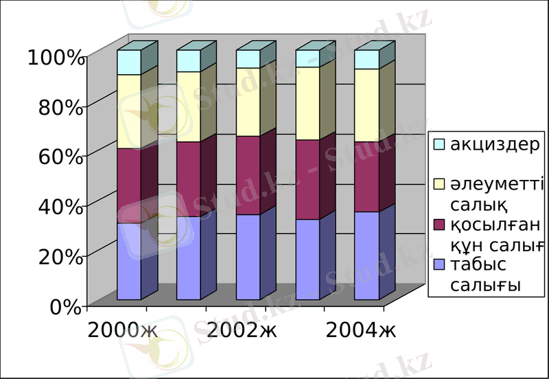 2002-2004 ж. мемлекттік бюджетке жоғары тұрақты түсімдер байқалып отыр. Егер 2002 жылы мемлекеттік бюджет түсімдері біршама үлкейсе - 7, 6%, онда 2003 ж. өсім 2002 жылмен салыстырғанда 27% болды, ал 2004 ж. - 31, 4%, 2003 ж. көрсеткішпен салыстырғанда.