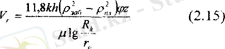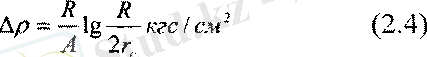 (2. 1), (2. 2) және (23) формулаларынан шыңырау түп аймағының ығыстырудың артылған қысымын табады