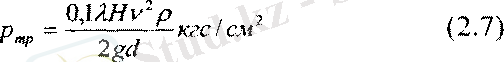 Ығыстыру құбырының колоннасындағы гидравликалық кедей мәндері мына формуламен анықталады: