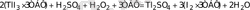 Реэкстракцияны концентрациясы 350 г/дм 3 күкірт қышқылының судағы ерітіндісіне Н 2 О 2 -ні қосу арқылы йодты тотықтырып комплексті былай бұзады.
