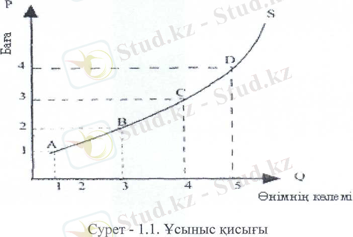 Осылайша, өндірілетін өнімнің санынан қатысты нарықтық бағасы көрсетіледі (ұсыныс қисығы оңға ығысады) .
