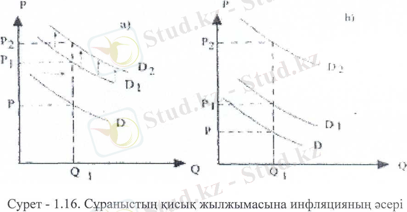 Шешілуі. Инфляцияның және бастапқы бағаның үздіксіз жоғарылауындағы қисықтың ығысуы, және керісінше түрінде 1. 16. - суреті бойынша көрсетілген.