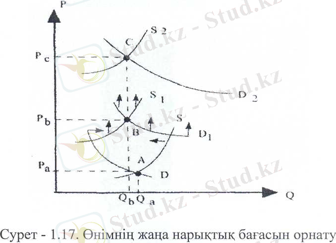 Нарықтық экономикада баға мен саны шығындардың төмендеуі кезінде түрақты болып қалуына маңызды емес. Және олар өзгеріп отырады және ұсыныстың жаңа қисығы қисығымен теңдестігіне келеді (сурет - 1. 11. ) .