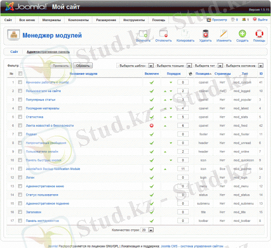 1. 2-сурет. Joomla!-ның басқару панелі