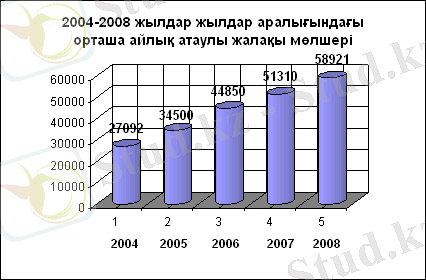 Елiмiздегi орташа айлық жалақының өсуiн келесi суреттен көре аламыз. Егер осы жалықының өсуiмен жұмыссыздық деңгейiн салыстыратын болсақ, онда елiмiзде жалақының өсуiмен байланысты жұмыссыздықтың төмендеп отырғанын көремiз. /6/