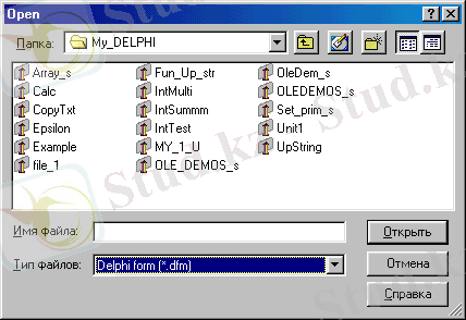 Форманың кодын Fіle=>Open=>DelphіForm(*. dfm) =>Example
