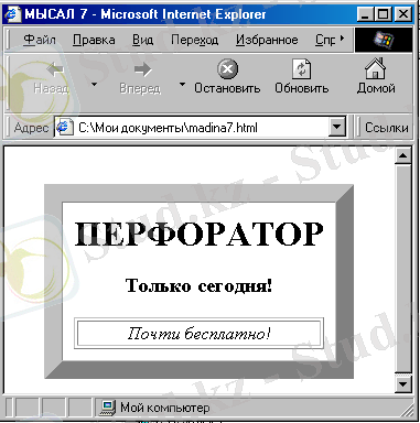 ... жалғасы<INPUT TYPE=submit VALUE="Поехали!">